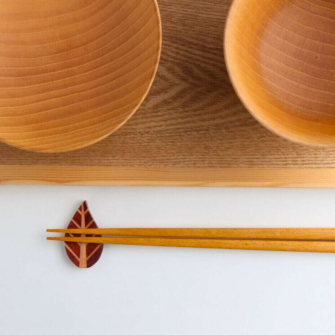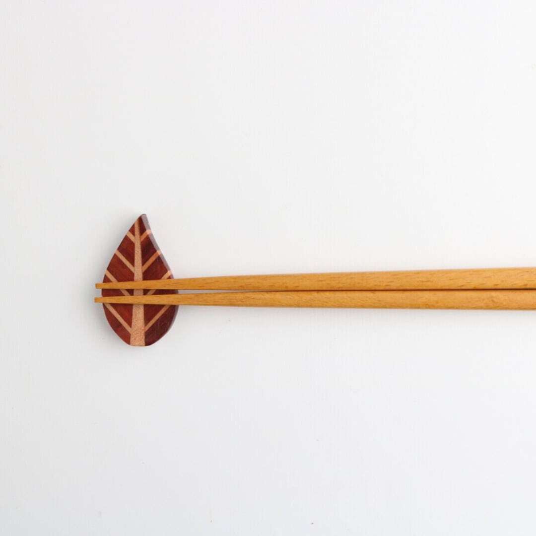 木の葉をモチーフにした遊び心のあるデザインが魅力の、寄木箸置きです。