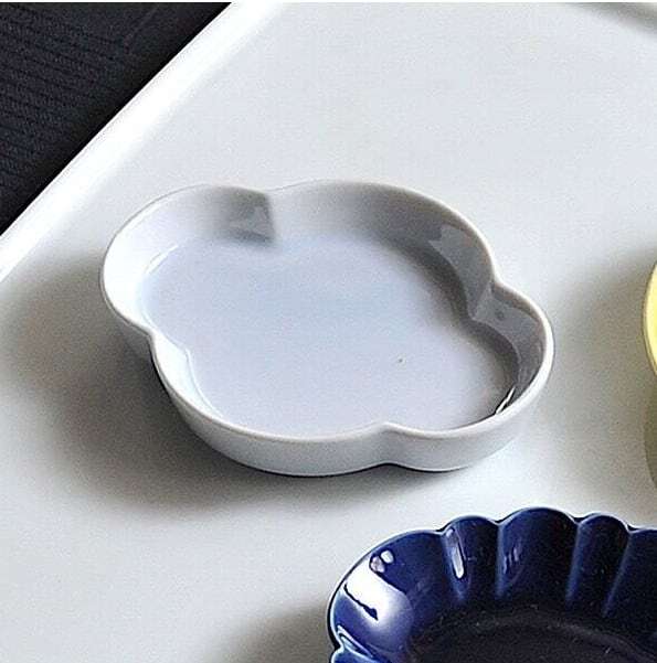 やさしいチップブルーの色合いと、雲のような柔らかいフォルムが印象的な美濃焼の小皿です。