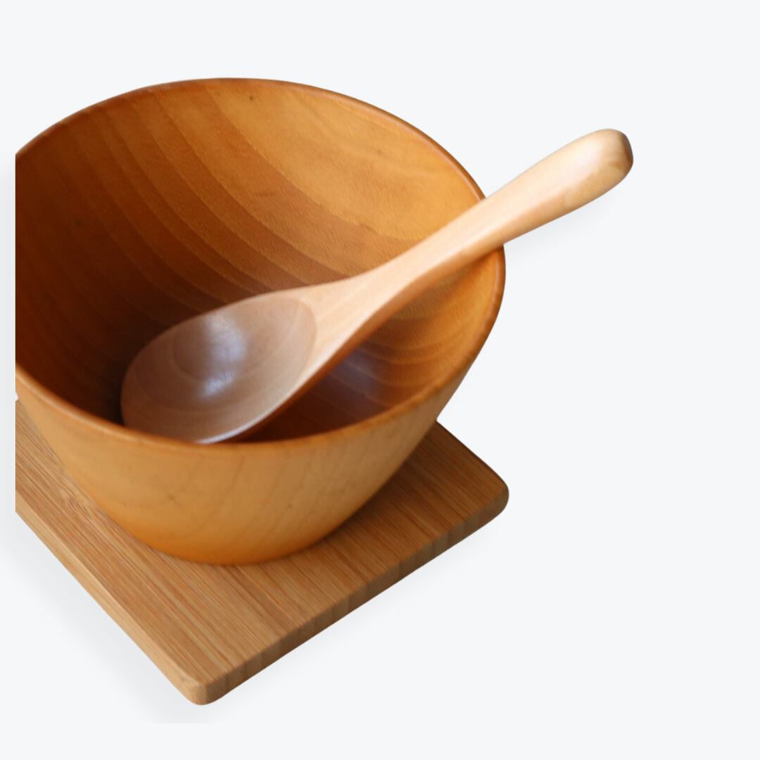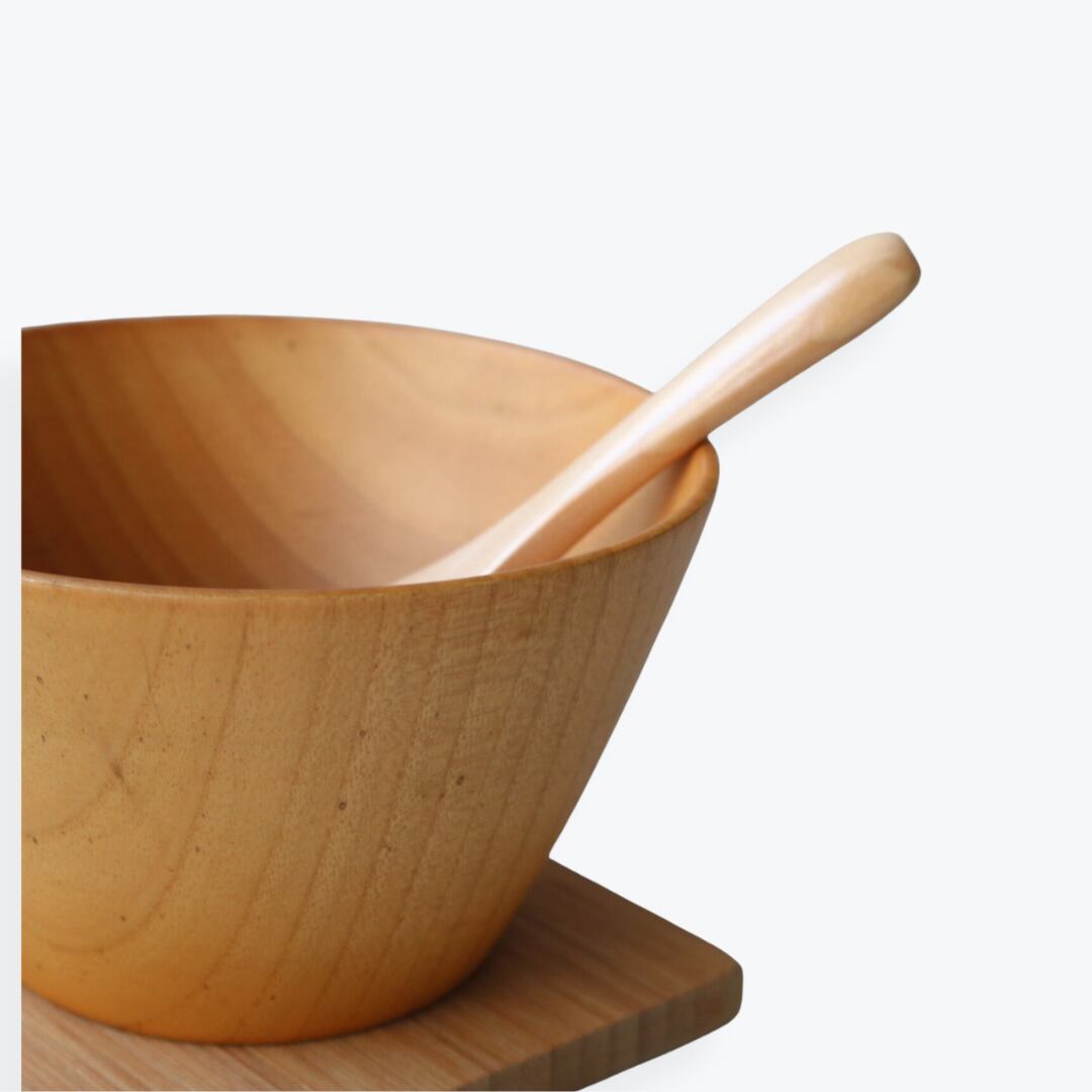 天然木ならではの木目や色合いには個体差があり、それぞれが世界にひとつの表情を持っています。使うほどに手になじみ、ツヤのある風合いへと育つのも楽しみのひとつ。